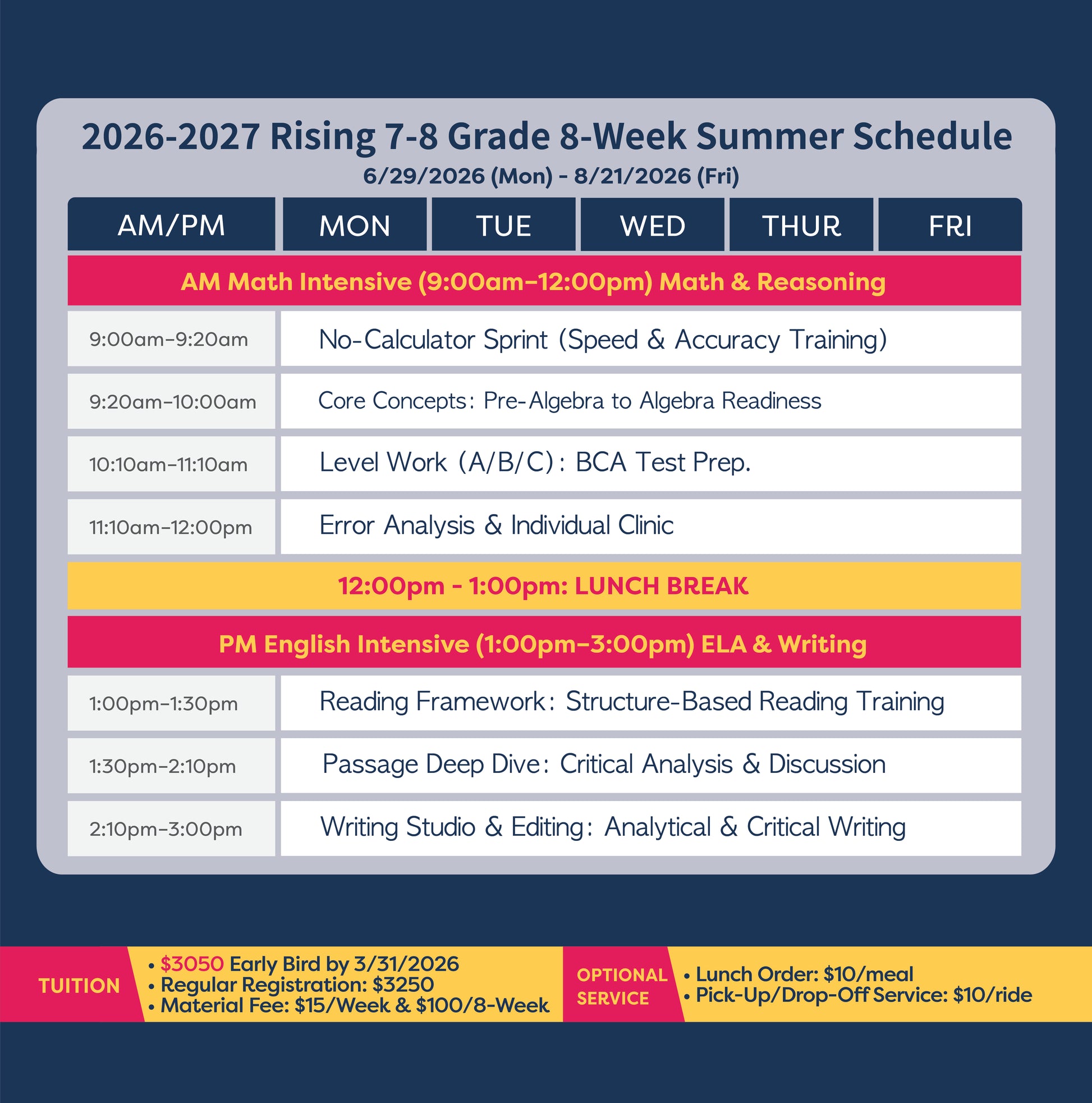 2026–2027 8-Week Summer Schedule (Grade 1-6)